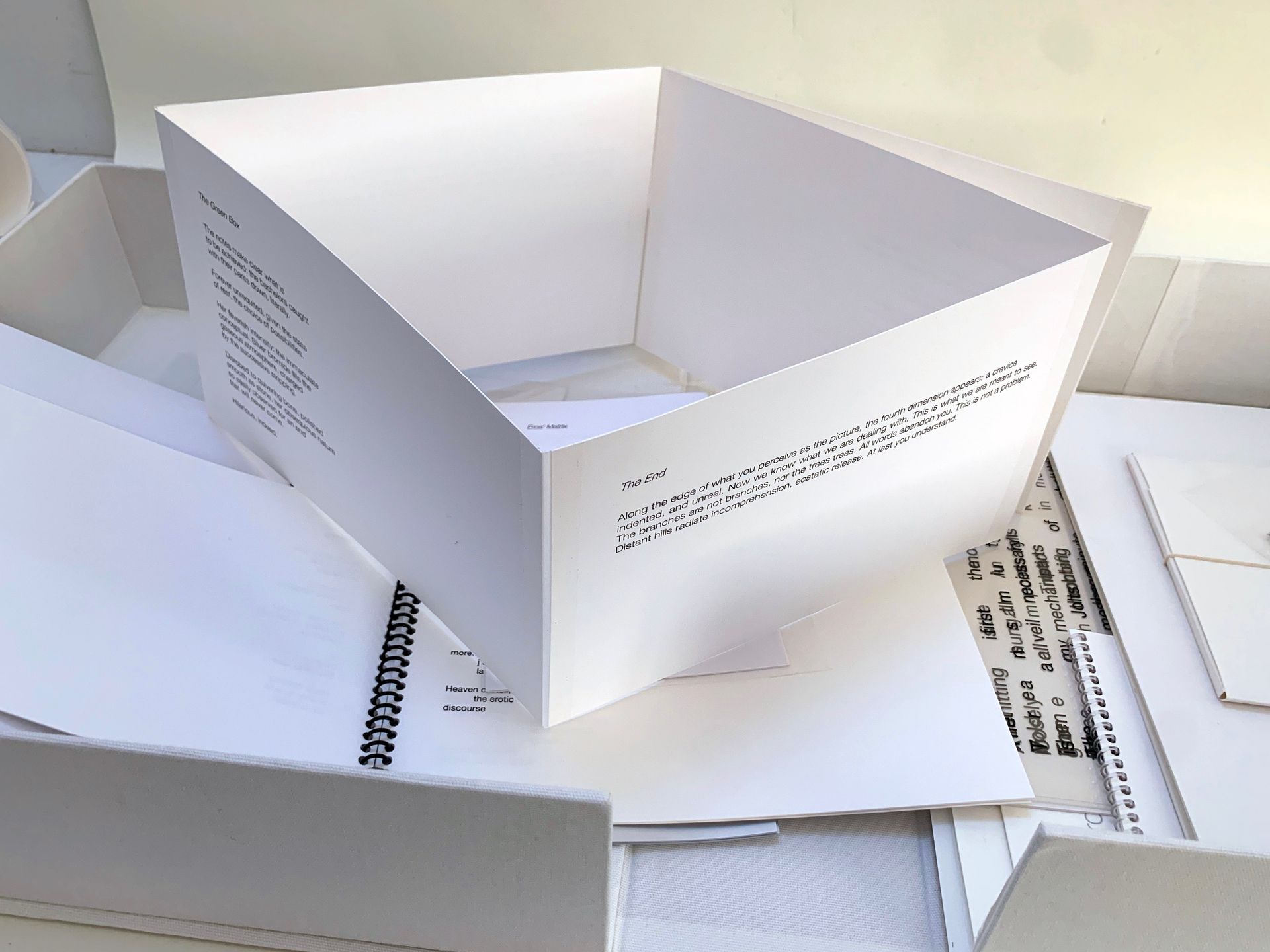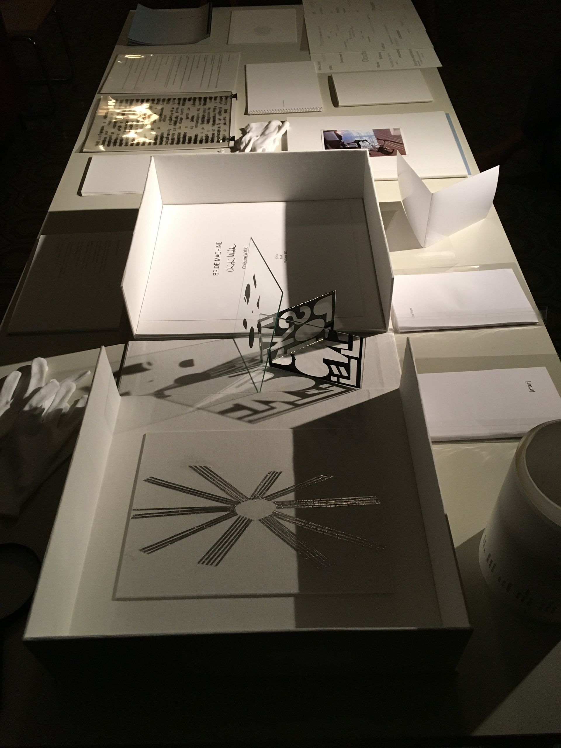 Bride Machine is an artist multiple composed of 14 different folios of poetry with original artwork in a custom-made clamshell box, inspired by Marcel Duchamp’s iconic Bride Stripped Bare By Her Bachelors, Even— also known as The Large Glass.